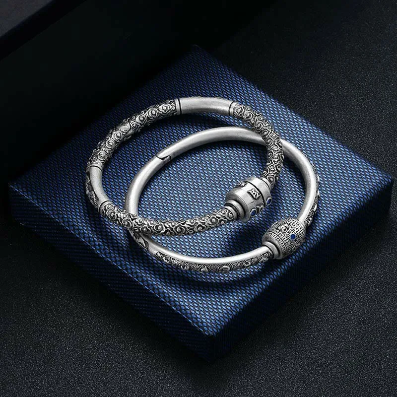 Elevate your spiritual journey with our 990 Sterling Silver Tibetan Auspicious Clouds Om Mani Padme Hum Engraved Creativity Bracelet Bangle. This mantra encompasses love. focus. wisdom. purity. peace. and creativity. connecting you to the universe’s vibrations.