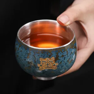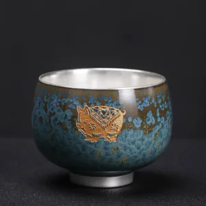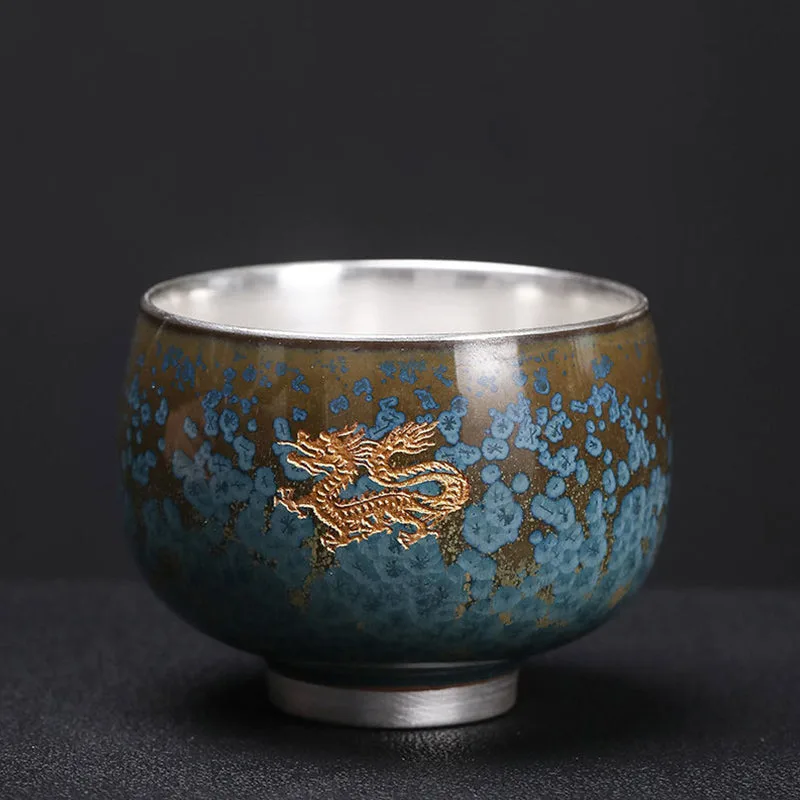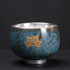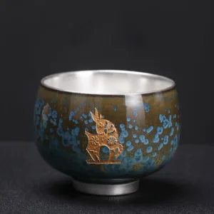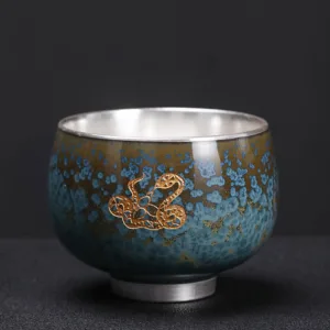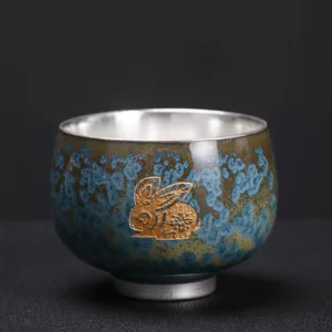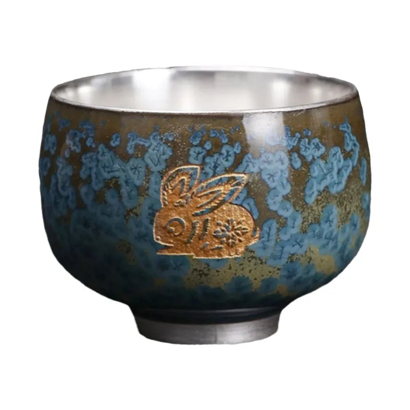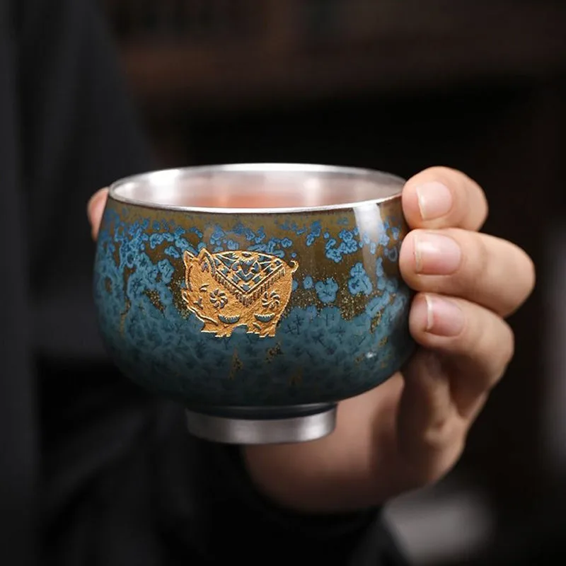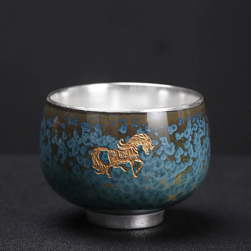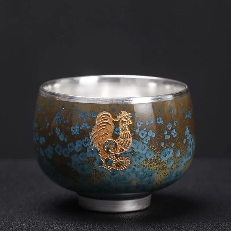Mythstone 999 Gilt Silver Gilt Chinese Zodiac Ceramic Teacup Kung Fu Tea Cup 160ml
