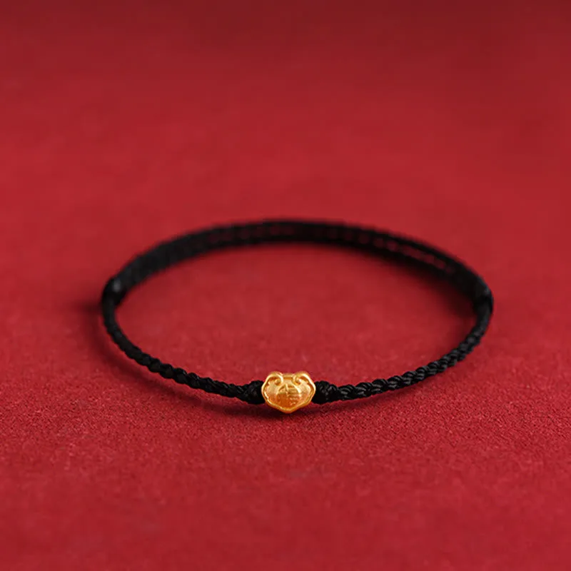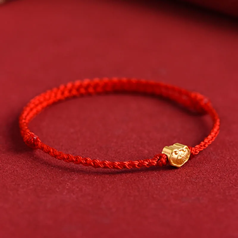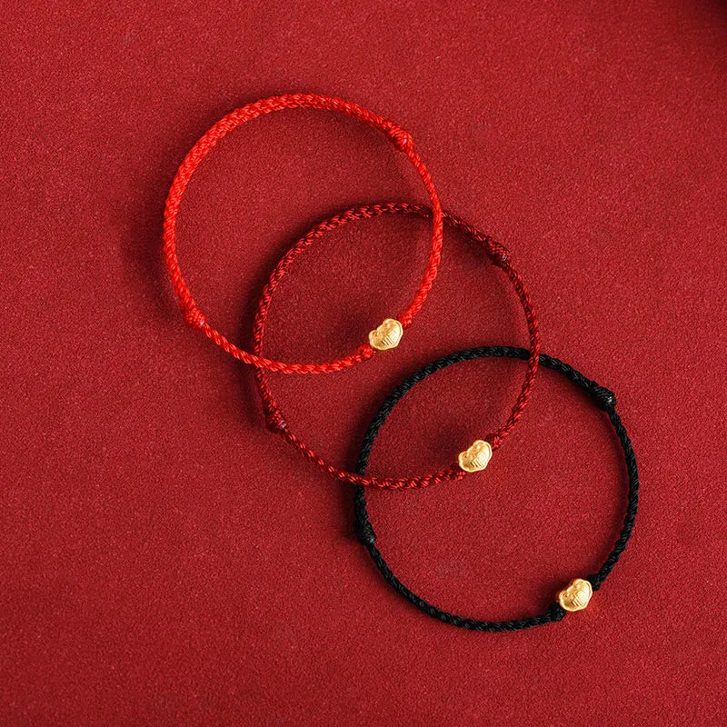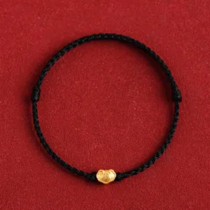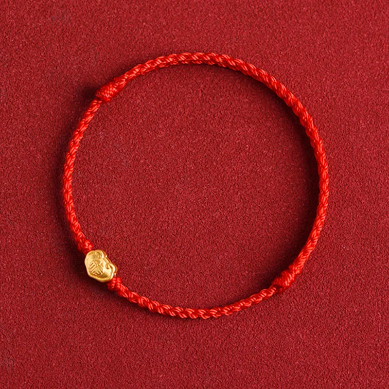 Mythstone 999 Gold Chinese Lock Charm Fu Character Protection Handmade Rope Bracelet