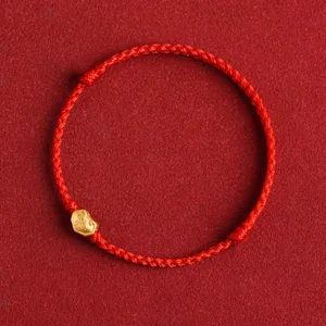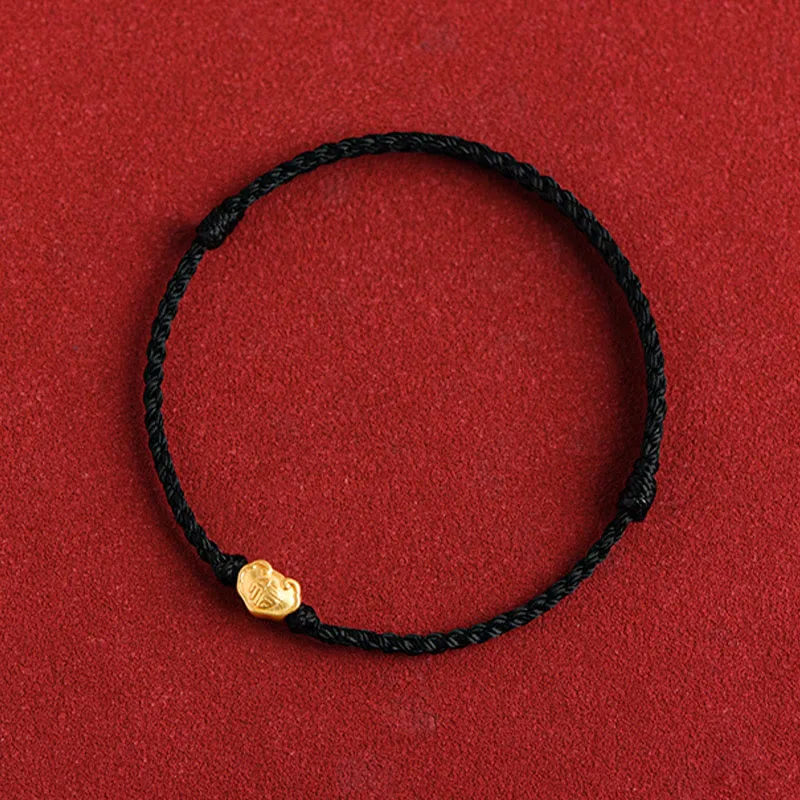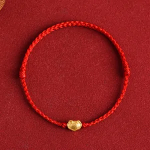 Gold Chinese Lock Charm bracelet features a 999 gold charm engraved with the Fu character. symbolizing protection and good fortune. Handmade with a durable rope. this bracelet combines traditional craftsmanship with meaningful symbolism. The charm’s intricate design enhances its role as a talisman. making it a powerful accessory for attracting positive energy and safeguarding its wearer.