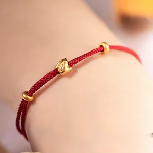 Mythstone 999 Gold Small Lucky Rabbit Osmanthus Design Handmade LuckBraided Rope Bracelet