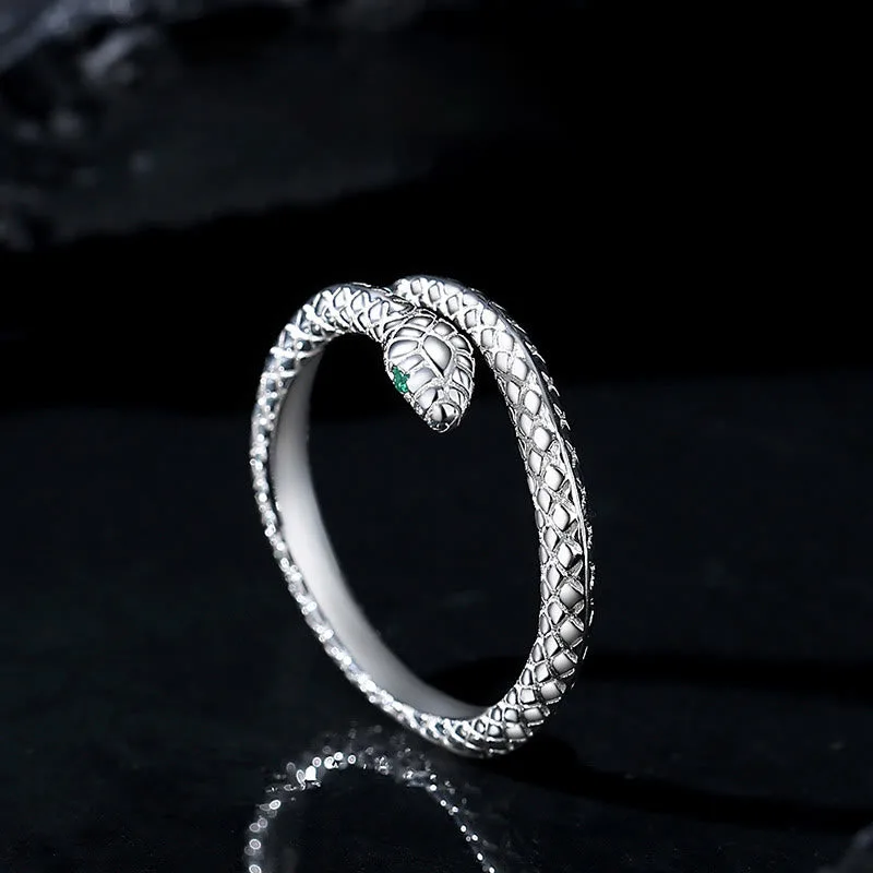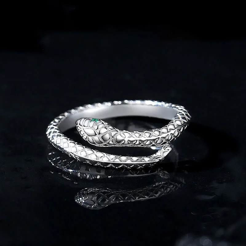 Mythstone 999 Sterling Silver Adjustable Snake-shaped Wrap Open Year Of The Snake Blessing Calm Ring