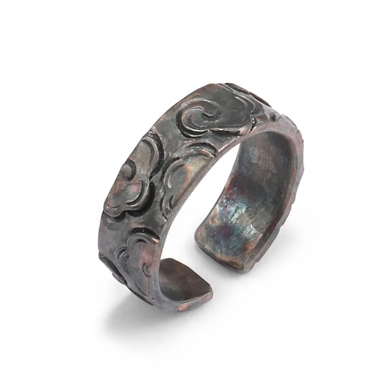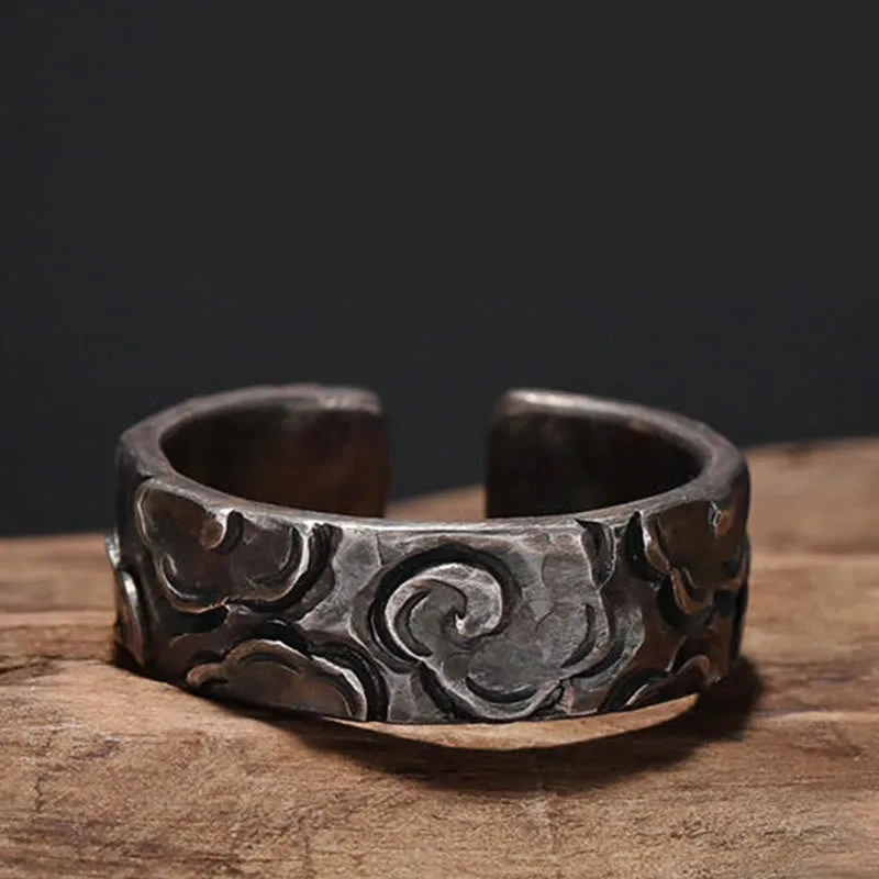 Auspicious Clouds Silver Ring features intricately carved cloud patterns symbolizing protection and blessings. Made from 999 sterling silver. this adjustable ring offers a meaningful design that reflects balance and peace. Ideal for those seeking spiritual protection and strength. the ring’s auspicious clouds represent good fortune. creating a perfect symbol for spiritual growth and mindfulness.