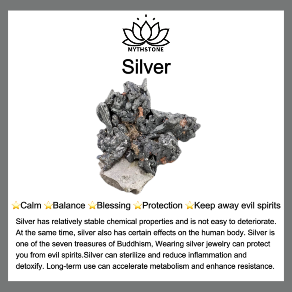 Silver has relatively stable chemical properties and is not easy to deteriorate. At the same time. silver also has certain effects on the human body. Silver is one of the seven treasures of Buddhism. Wearing silver jewelry can protect you from evil spirits. Silver can sterilize and reduce inflammation. detoxify and maintain health. and prolong life. Long-term use can accelerate metabolism and enhance resistance.