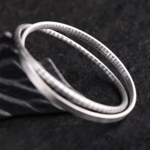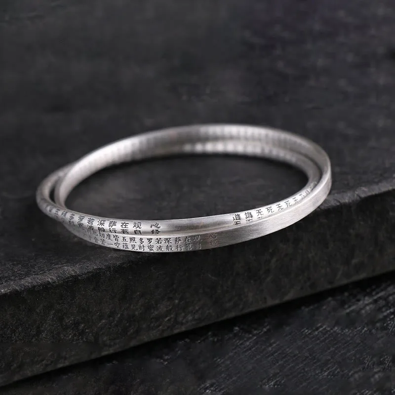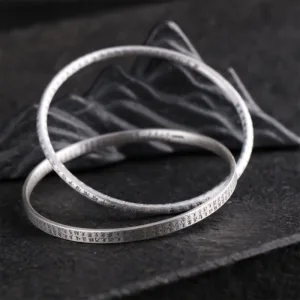 This elegant sterling silver bangle. adorned with the Heart Sutra. offers bothspiritual significance and stylish charm.Ideal for those seeking mindfulness and protection. it’s a perfect accessory for daily wear or meditation sessions. blending fashion with spiritual grounding.