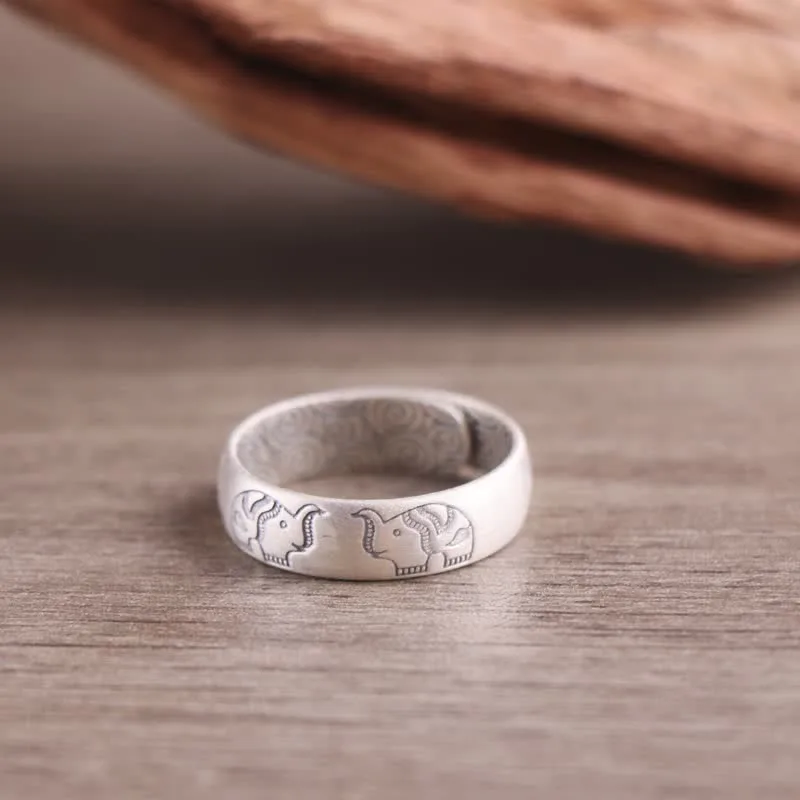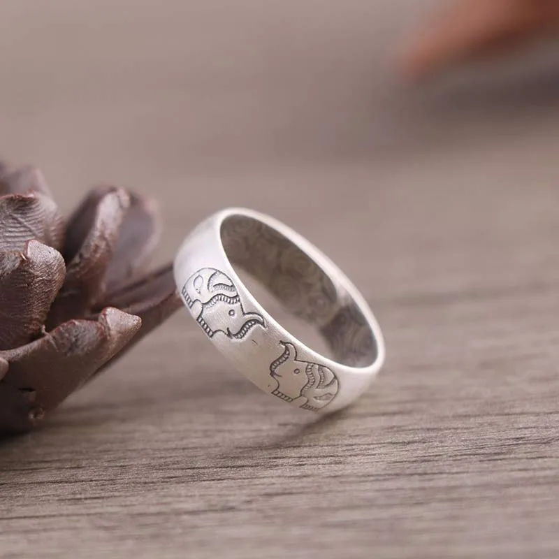 Mythstone 999 Sterling Silver Lotus Elephant Six True Words Blessing Ring