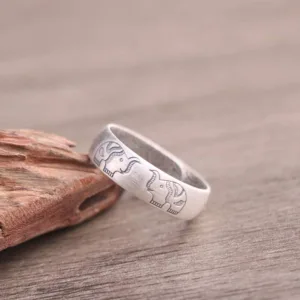 The Mythstone 999 Sterling Silver Lotus Elephant Six True Words Blessing Ring is a unisex adjustable ring made of high-quality 999 sterling silver. The ring features a Lotus symbol representing enlightenment and new beginnings. an Elephant symbol representing strength and wisdom. and the Six True Words ‘Om Mani Padme Hum’ mantra symbolizing love. focus. wisdom. purity. peace. and creativity. Wearing silver jewelry can protect from evil spirits. sterilize and reduce inflammation. detoxify. maintain health. and prolong life. The ring is handmade. natural. and may have irregularities.