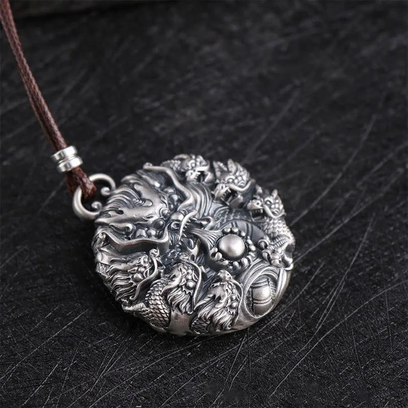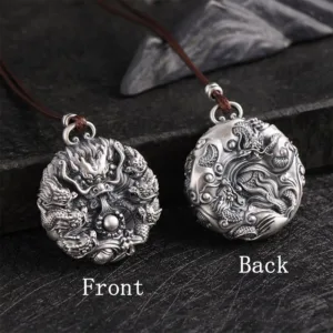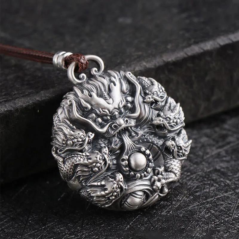 This Sterling Silver Pendant. adorned with nine dragons and a pearl. offers a blend of elegance and spiritual symbolism. Ideal for those seeking a touch of luck and protection. it’s perfect for both everyday wear and special occasions. embodying strength and grace.