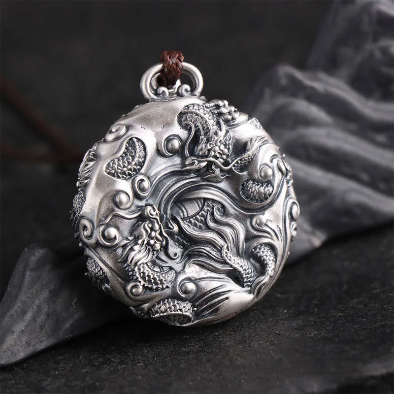 Mythstone 999 Sterling Silver Nine Dragons Playing With A Pearl Luck Protection Necklace Pendant