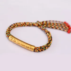 In lineages of Tibetan Vajrayana Buddhism. tying a cord or string around the wrist is common during ceremonies. Traditionally. the Lama blesses the string and then ties a knot and imbues it with a mantra. Similar to other traditions. it’s said that these red cords bring luck and offer protection.
