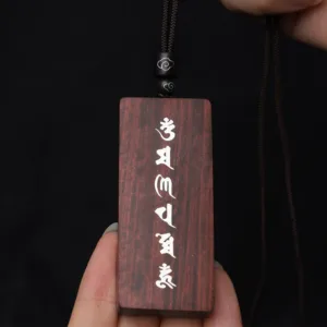 Experience the harmonious fusion of spirituality and elegance with our Mythstone Sterling Silver Om Mani Padme Hum Necklace. The Small Leafred sandalwood and ebony wood evoke a sense of grounding. while the intricate design and sacred mantra offer protection and serenity. Embrace the balance of beauty and spiritual significance in this exquisite pendant.