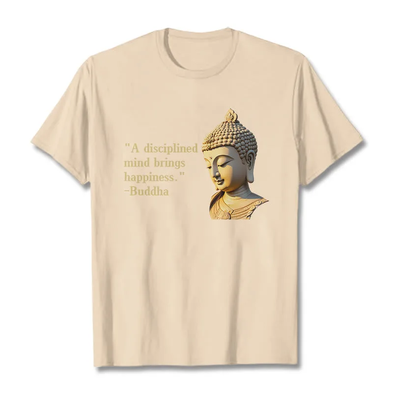 A Disciplined Mind Tee features an insightful Buddha design with the phrase “A Disciplined Mind Brings Happiness.” Made from soft. breathable fabric. this comfortable t-shirt is perfect for meditation or casual wear. The meaningful print and relaxed fit ensure both style and comfort. Embrace the wisdom of Buddhist teachings with this thoughtfully designed tee.