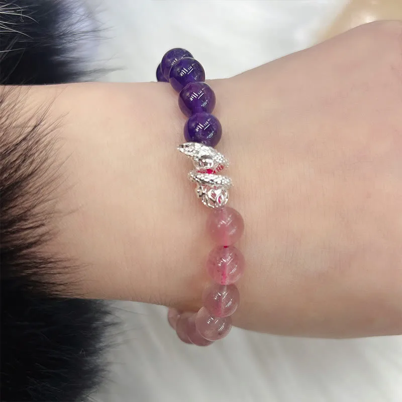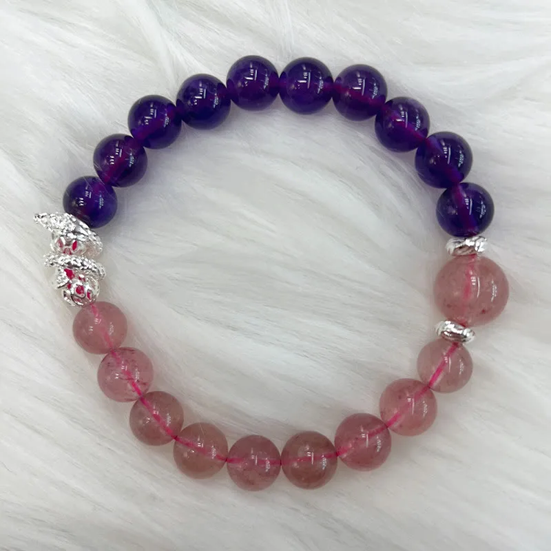 - Material: Amethyst. Strawberry Quartz. Alloy