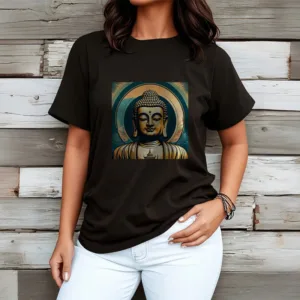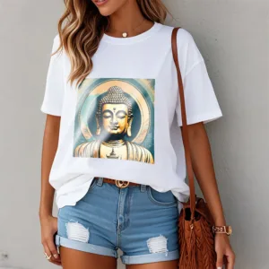Aura Golden Buddha Tee symbolizes enlightenment and spiritual awakening with its radiant design. Made from soft. breathable fabric. this tee offers comfort while promoting a sense of inner peace and wisdom. The golden Buddha image serves as a reminder of mindfulness and tranquility. making it ideal for those who seek to cultivate spiritual growth and harmony in their lives.