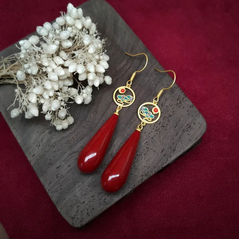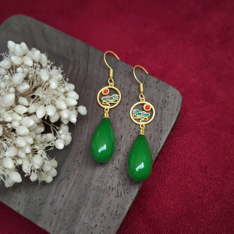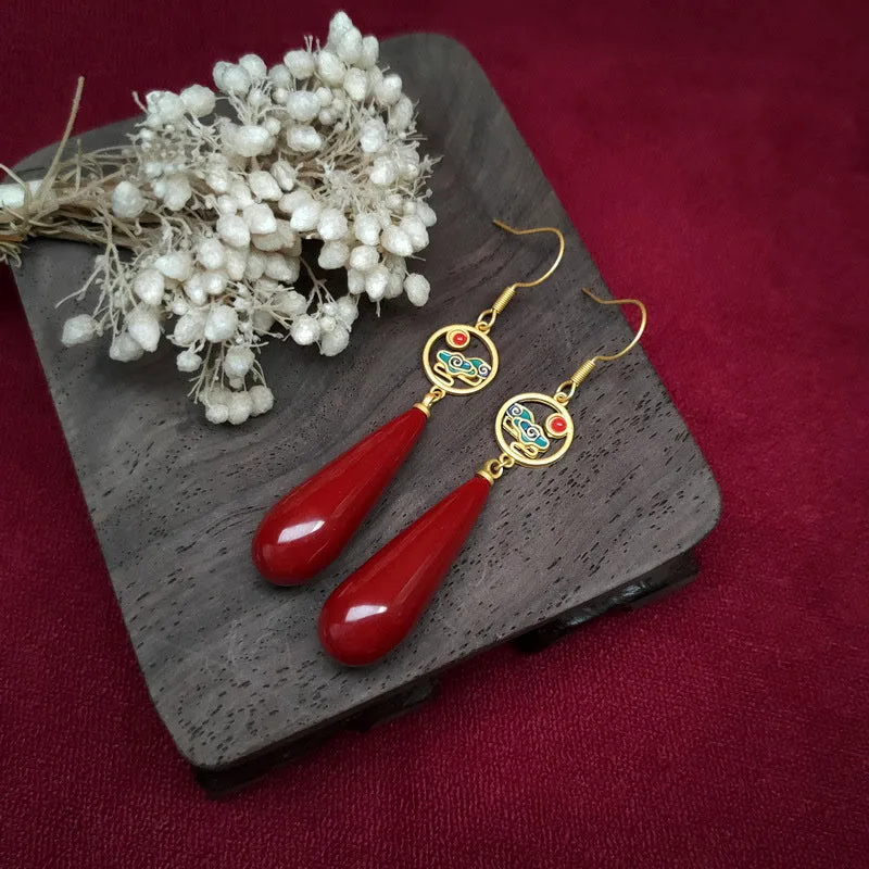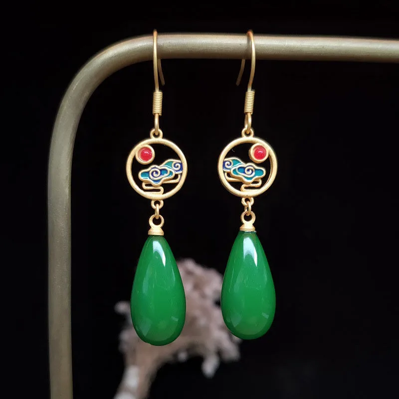 Experience the power of balance. self-care. and abundance with our Mythstone Auspicious Cloud Copper Wealth Water Drop Earrings. Handcrafted with high-quality copper. these earrings help ground your energy. attract wealth and prosperity. and connect with the spiritual realm for positive transformation. Embrace luck and elevate your style.
