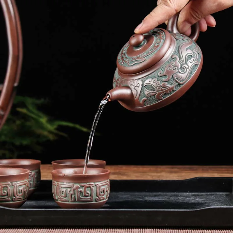 Dive into the rich tapestry of Chinese tea culture with our exquisite Gongfu teapot. Graced by the ethereal Auspicious Clouds and the legendary Dragon and Phoenix. this ceramic masterpiece offers not just functionality. but a dance of mythology and artistry. It’s more than a tea set??it’s a journey through time and tradition.