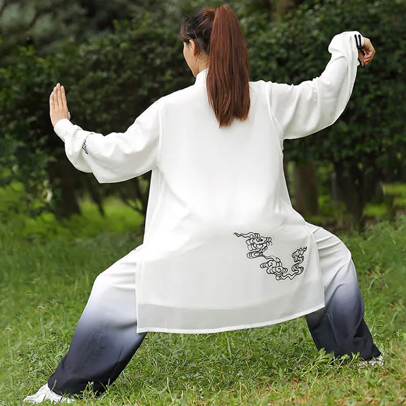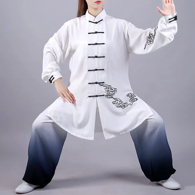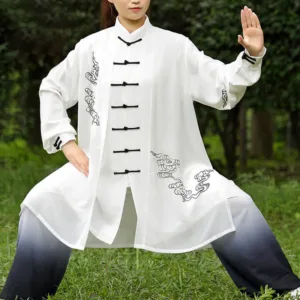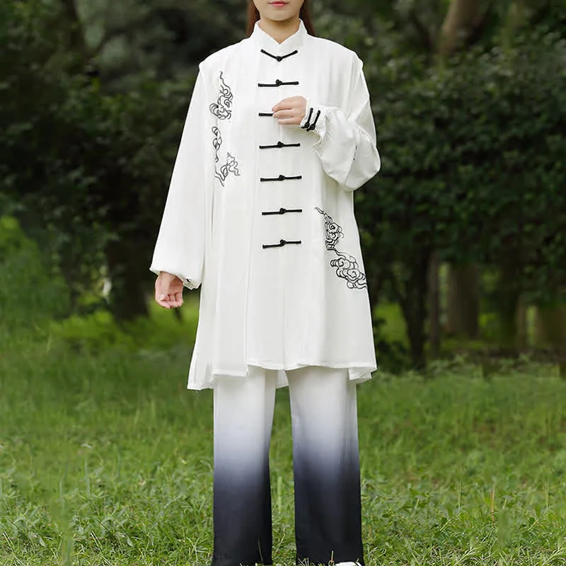 Immerse yourself in the tranquility of Zen with our Mythstone Auspicious Clouds Gradient Meditation Prayer Spiritual Zen Tai Chi Qigong Practice Women’s Clothing Set. Handmade with premium materials. it offers comfort. breathability. and a serene ambiance for your spiritual journey.