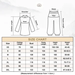 - COMFORTABLE WEARING: Soft and Relax. In spiritual practices such as Yoga. Tai Chi. Qi Gong. Zen Meditation. and Praying. the uniform does fit close to the body and makes the practitioner feel comfortable. meeting the requirements of Tai Chi. Zen Meditation. and Yoga practicing.