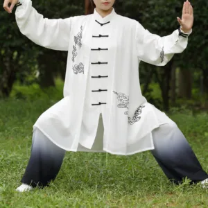 - PREMIUM MATERIAL: The Tai Chi Uniform is crafted from high-quality Handmade material; skin-friendly. Breathable. Relaxed and Comfortable. which will prevent excessive perspiration and keeps the body comfortable. And Polyester Fiber is a better environmentally friendly choice for healthy exercises.