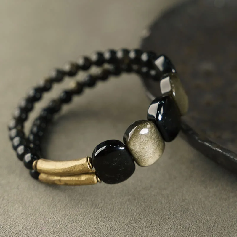 - Material: Gold Sheen Obsidian. Black Obsidian. Copper