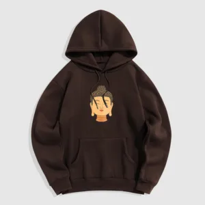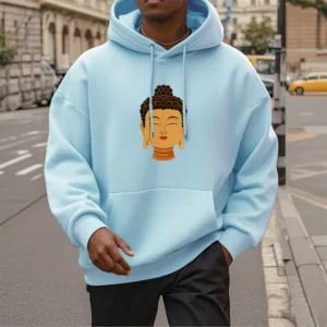“Blending traditional Buddhist motifs with modern style. this hoodie aims to inspire inner peace and spiritual connection. By honoring the wisdom of Buddhism through accessible. contemporary design. we hope this piece brings joy and spiritual strength to all who wear it.”
