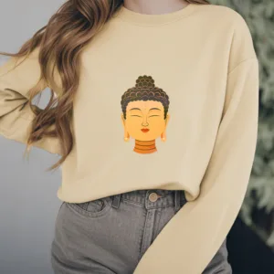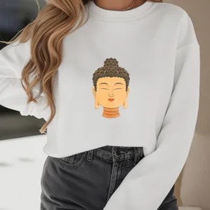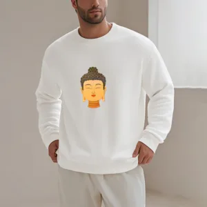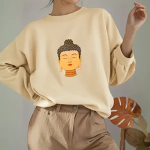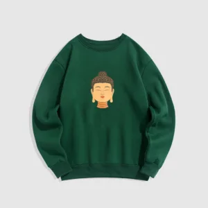 “Blending traditional Buddhist motifs with modern style. this sweatshirt aims to inspire inner peace and spiritual connection. By honoring the wisdom of Buddhism through accessible. contemporary design. we hope this piece brings joy and spiritual strength to all who wear it.”