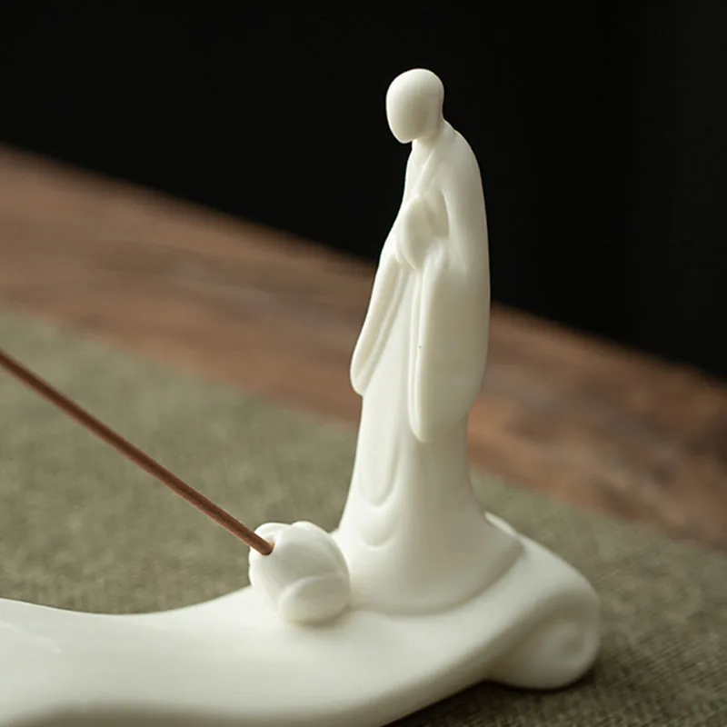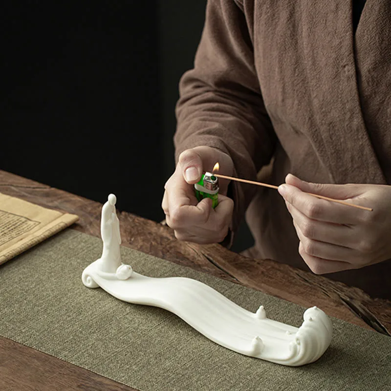 Mythstone Buddha Monk Ceramic Sea Wave Mountain Blessing Incense Burner Decoration