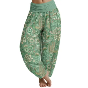 - Design: These women’s yoga harem pants showcase a stunning Bohemian cashew flower. peacock and sunflower pattern. perfect for adding a unique touch to your activewear collection.