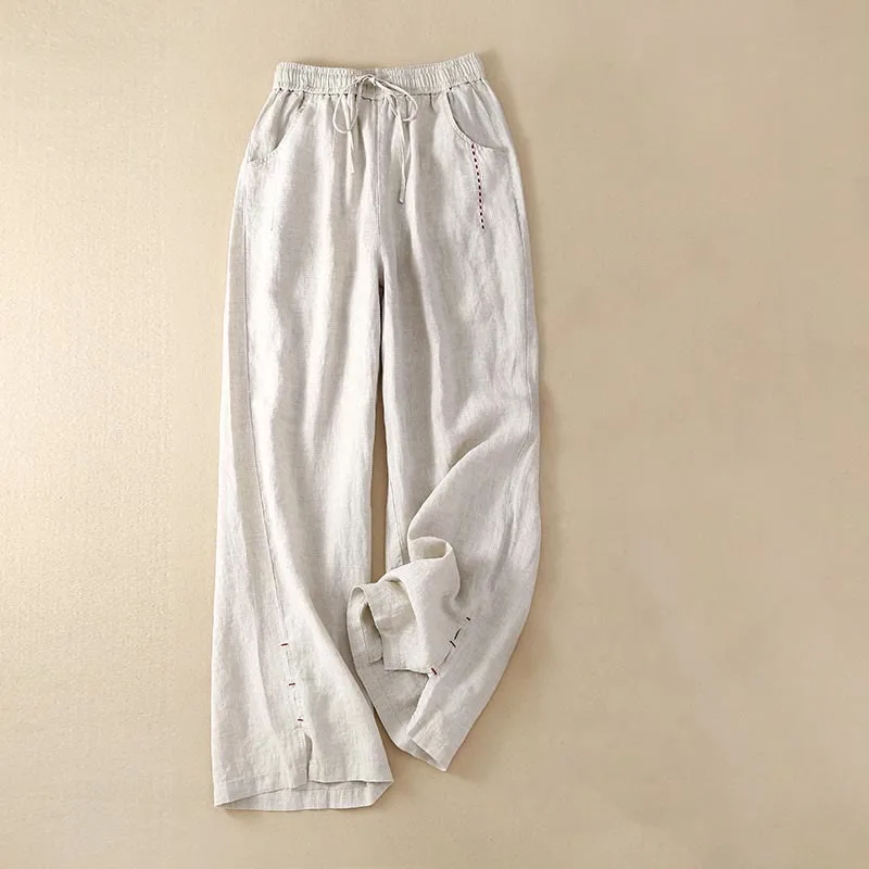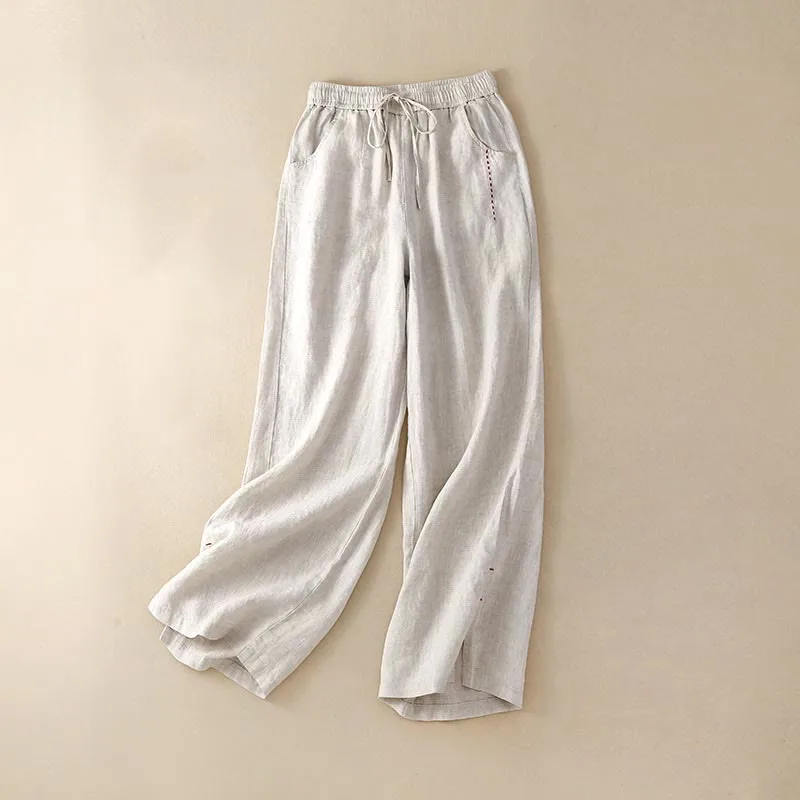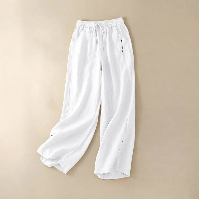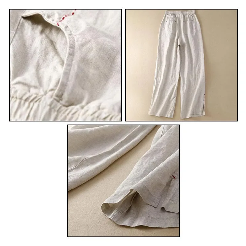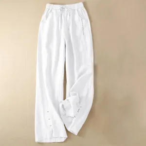 Lace-up Slit Cotton Wide Leg Pants feature a high waist design that offers comfort and a flattering silhouette. Made from high-quality cotton. these pants provide breathability and softness. ensuring ease of movement. The stylish slits add a unique flair. allowing for airflow and a trendy touch. Practical pockets enhance functionality. making these pants perfect for everyday use while representing a blend of elegance and practicality.