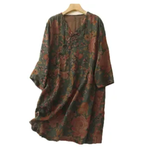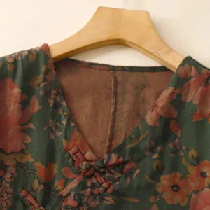 Printing V Neck Cotton Shirts offer a graceful design with a floral pattern throughout. combining elegance and comfort. Made from a soft cotton-linen blend. this long-cut shirt with a V-neck and button-down front enhances breathability and ease of movement. The floral motifs symbolize natural beauty. making this shirt an ideal choice for those who appreciate calm and serenity in their attire.