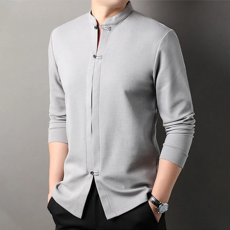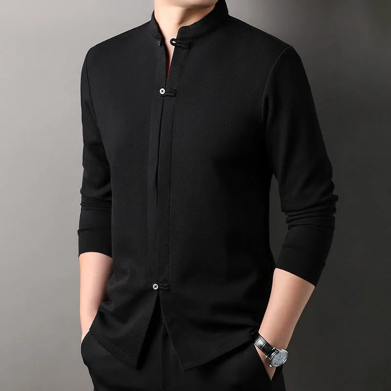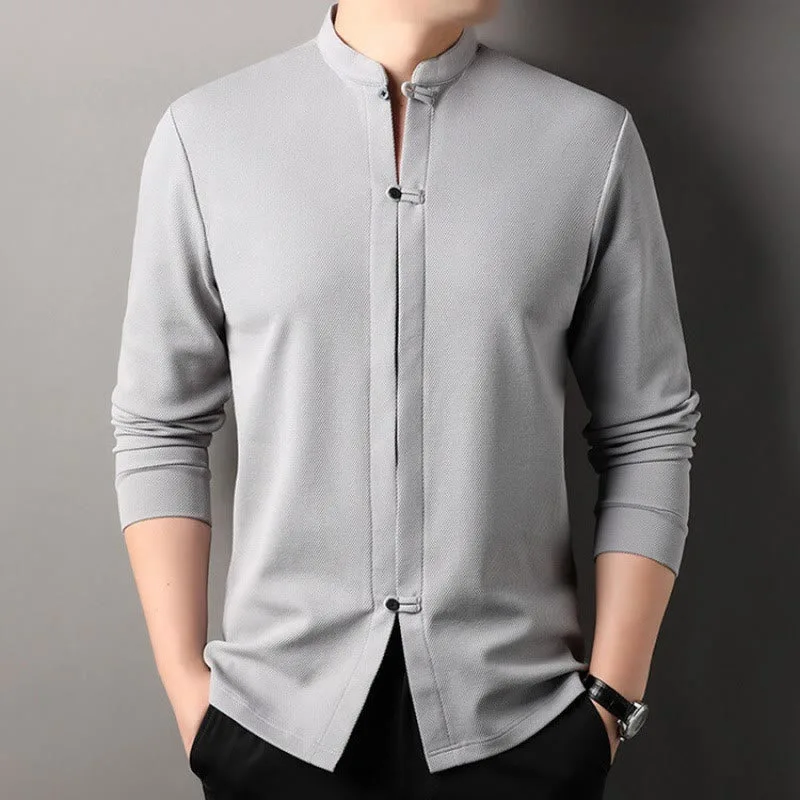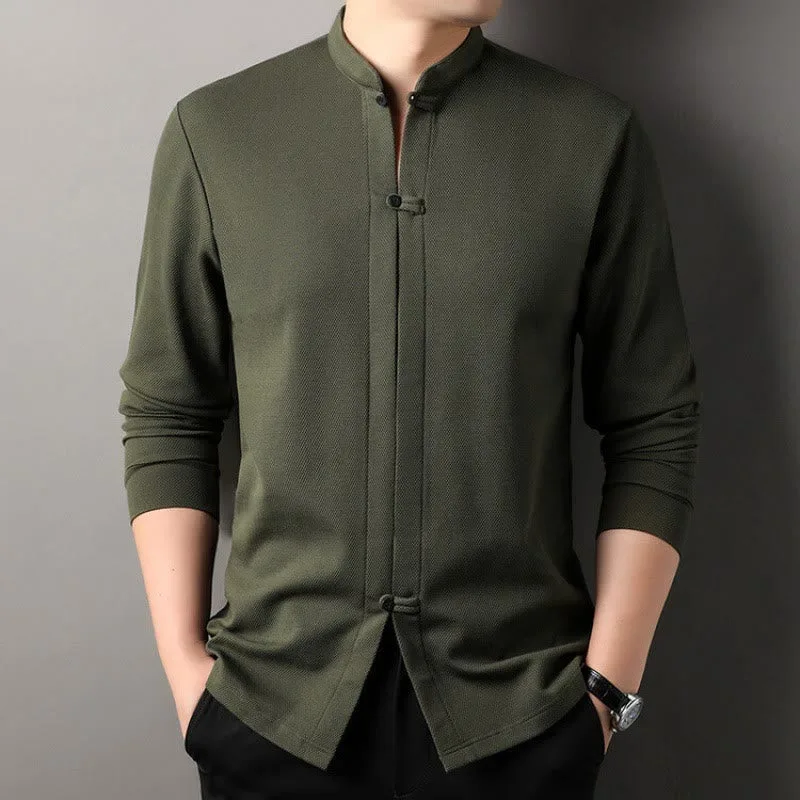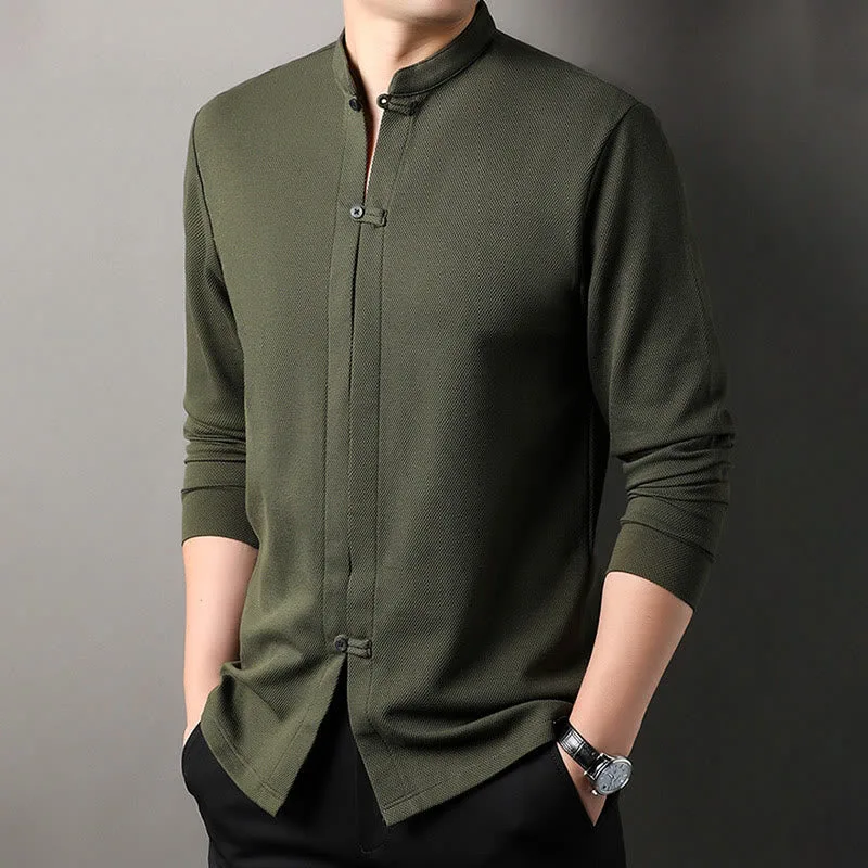 Mythstone Casual Solid Color Long Sleeve Cotton Men’s Shirts