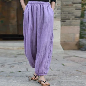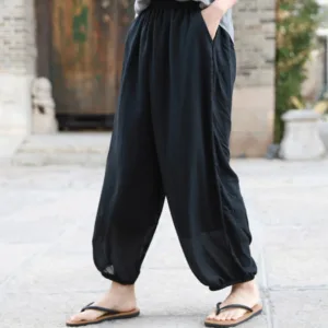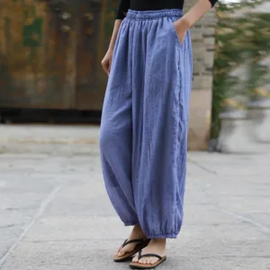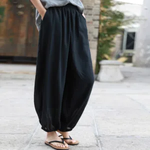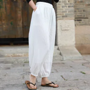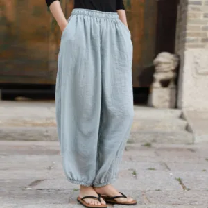 Casual Summer cotton pants feature a comfortable elastic waistband and a loose fit for easy wear. Designed with functional pockets. they offer practicality alongside comfort. Made from soft cotton. these pants are perfect for maintaining ease of movement while ensuring breathability. The relaxed design helps keep you cool and comfortable throughout the day.