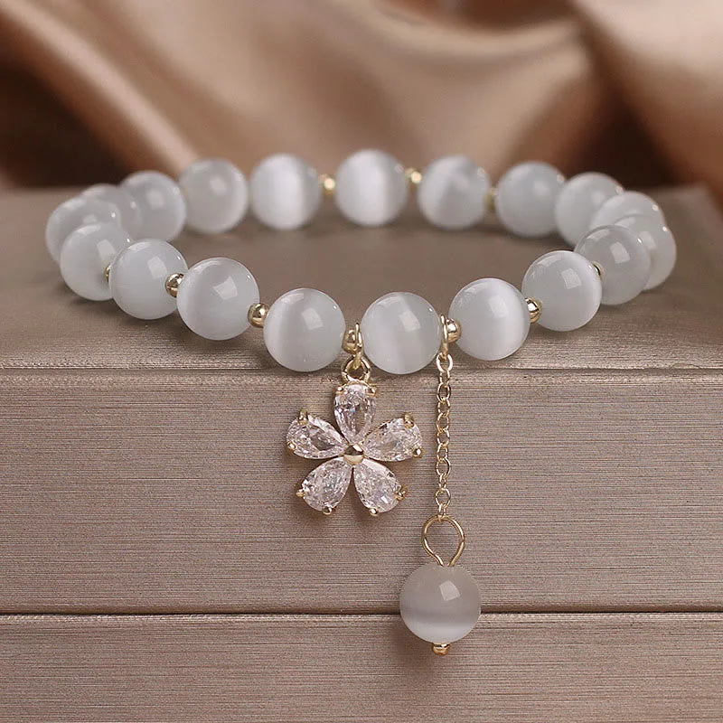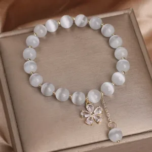 Cat’s Eye Flower Charm Peace bracelet combines elegance with symbolic meaning. Featuring cat’s eye stones and a delicate flower charm. this bracelet symbolizes peace and support. Perfect for those who appreciate meaningful jewelry. it adds a touch of beauty and positive energy to any outfit. making it an ideal accessory for daily wear and special occasions.