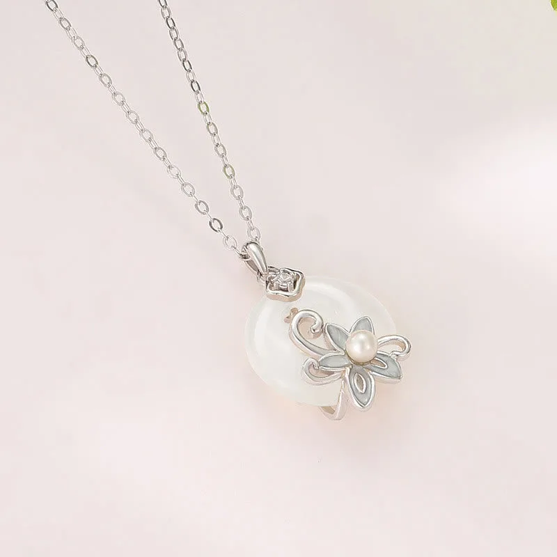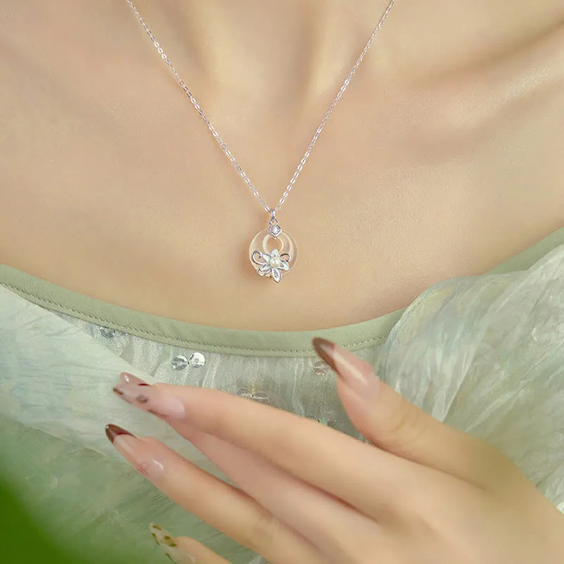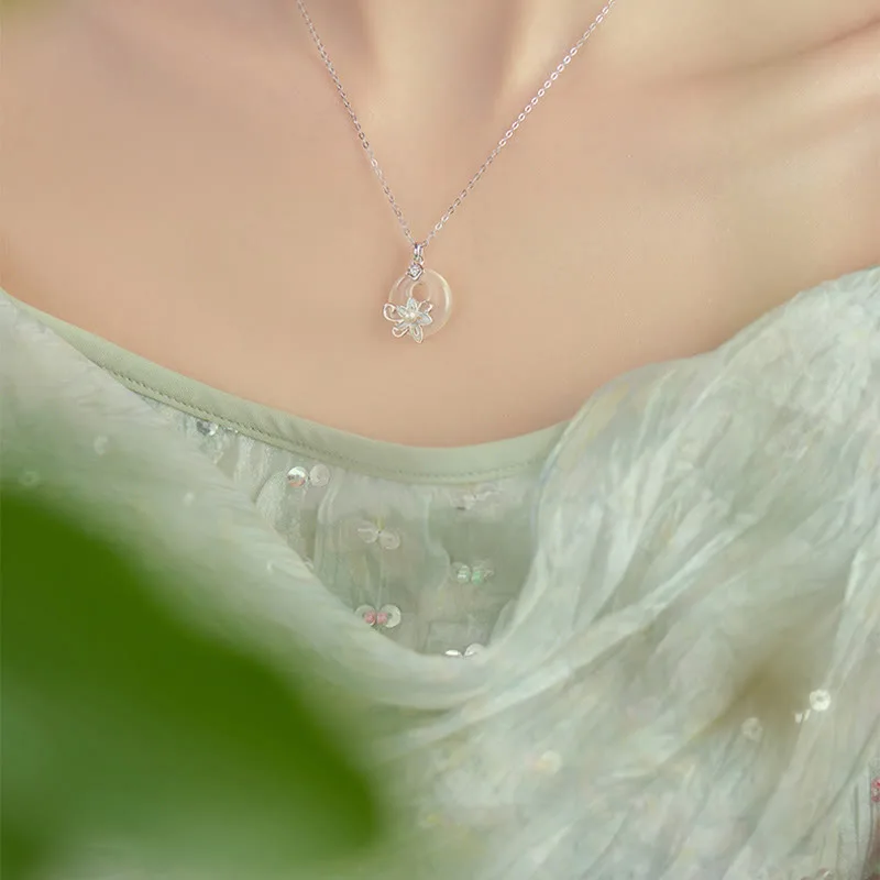 Mythstone Chalcedony Peace Buckle 999 Sterling Silver Lotus Positive Necklace Pendant