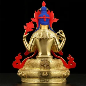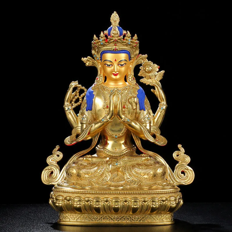 - Each copper statue is made using the gilt method. After casting. it is hand detailed and carved by master craftsmen before being completely gold-plated. Finally. Chenrezig’s face is painted with gold.