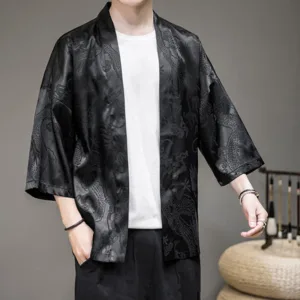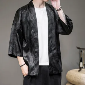 Chinese Dragon jacket features an open front design with intricate dragon embroidery. This men’s kimono. crafted for comfort. symbolizes power and wisdom. The dragon motifs inspire strength and courage. making it perfect for meditation and spiritual practices. The thoughtful design and meaningful symbolism create a sense of inner peace and balance.