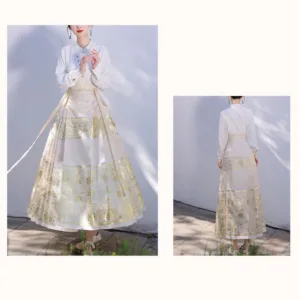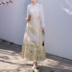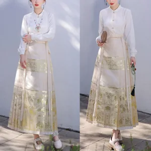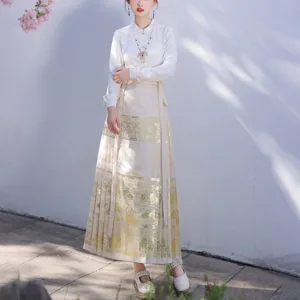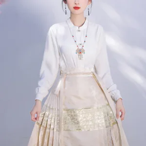The horse face skirt is a traditional Chinese skirt characterized by its distinct pleated design. It is occasionally referred to in a more generic sense as an apron. This type of skirt is a key component of Hanfu. the traditional dress of Han Chinese women. serving as a lower garment. It is celebrated as one of the most emblematic styles of ancient Chinese skirts.