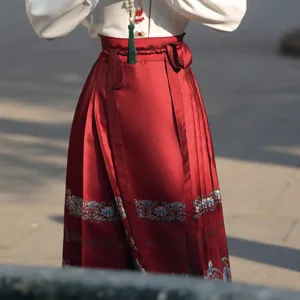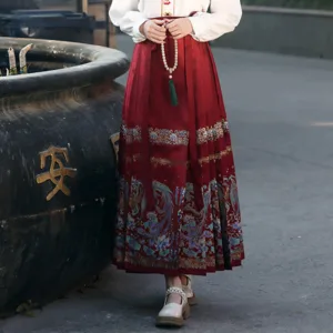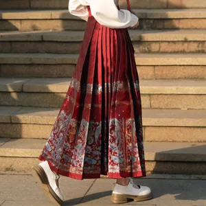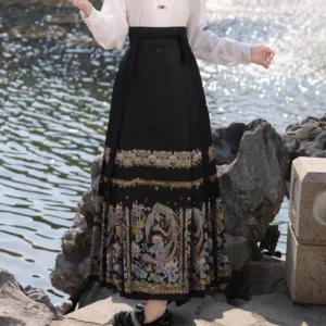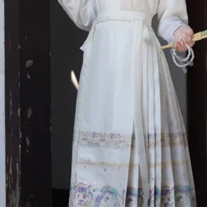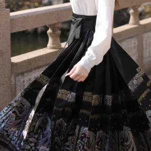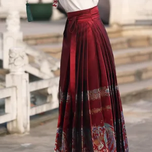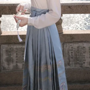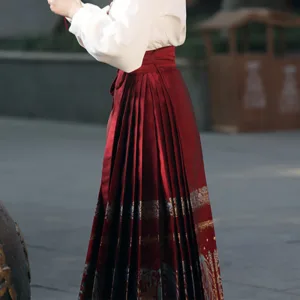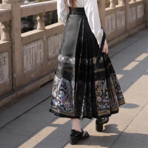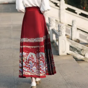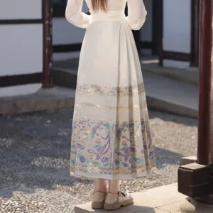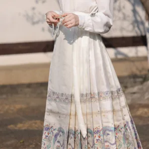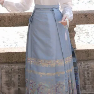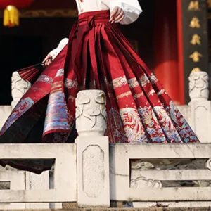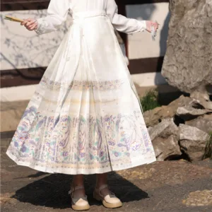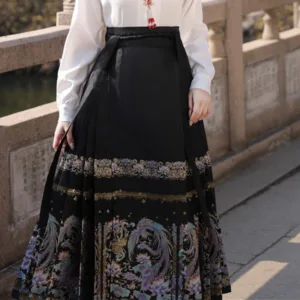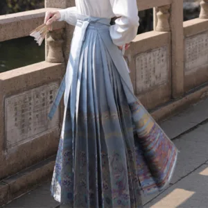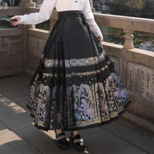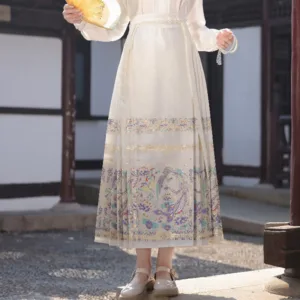 The horse face skirt is a traditional Chinese skirt characterized by its distinct pleated design. It is occasionally referred to in a more generic sense as an apron. This type of skirt is a key component of Hanfu. the traditional dress of Han Chinese women. serving as a lower garment. It is celebrated as one of the most emblematic styles of ancient Chinese skirts.