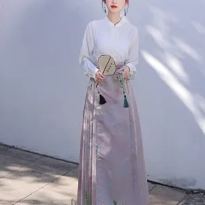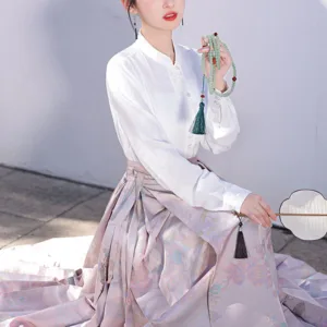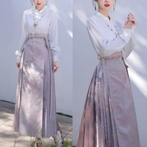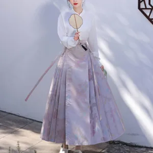 The horse face skirt is a traditional Chinese skirt characterized by its distinct pleated design. It is occasionally referred to in a more generic sense as an apron. This type of skirt is a key component of Hanfu. the traditional dress of Han Chinese women. serving as a lower garment. It is celebrated as one of the most emblematic styles of ancient Chinese skirts.