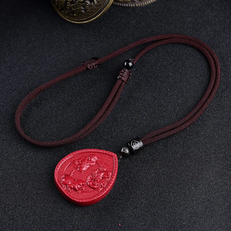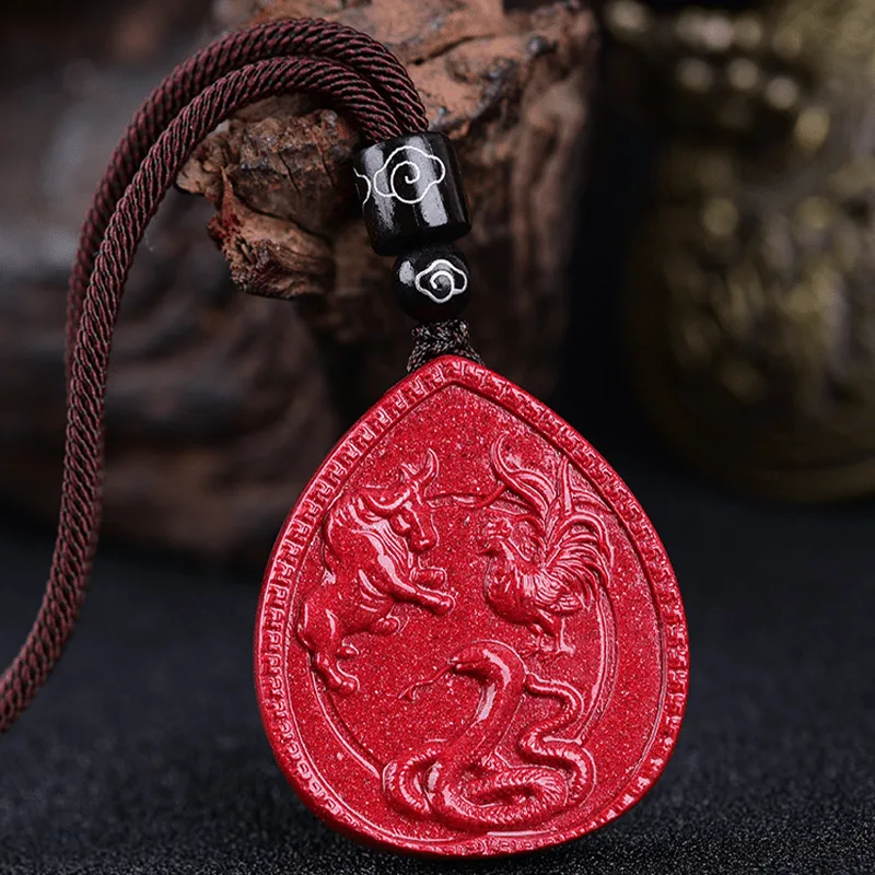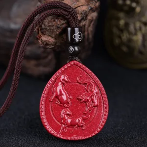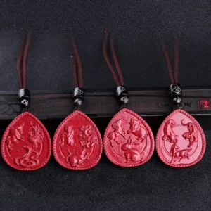 Mythstone Chinese Zodiac Cinnabar Blessing Necklace Pendant