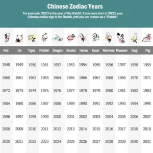 For example. 2023 is the year of the Rabbit. If you were born in 2023. your Chinese zodiac sign is the Rabbit. and you are known as a “Rabbit”.
