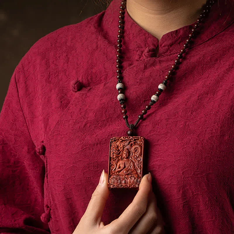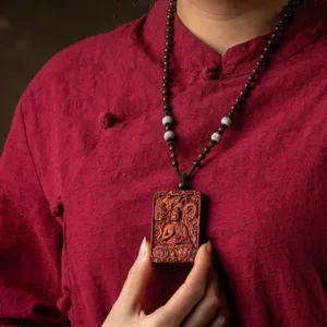 Embrace the harmonizing energy of our Chinese Zodiac Natal Buddha Small Leaf Red Sandalwood Necklace Pendant. Crafted to channel the essence of your birth year’s zodiac animal. this pendant offers protection and positivity. The natural beauty of red sandalwood beads adds an earthy touch. while the intricate Natal Buddha design symbolizes inner strength and enlightenment on your unique life journey.