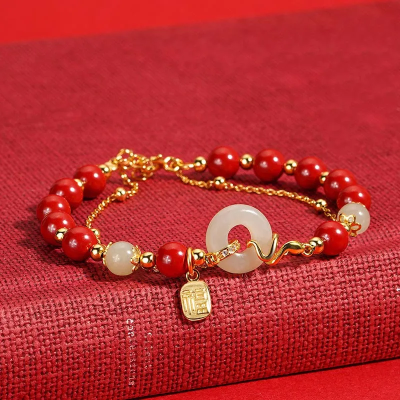 - Material: Cinnabar. Hetian Jade. 925 Sterling Silver. 18k Gold plated. Zirconia