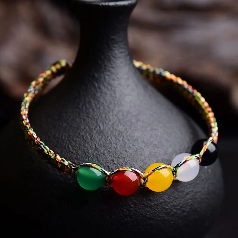 5 Elements are metal. water. wood. fire. and earth. in feng shui. The meanings of the 5 different colors of the beads are as followings: