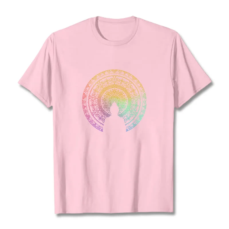 Mythstone Colorful Gradient Mandala Buddha Cotton Tee T-shirt