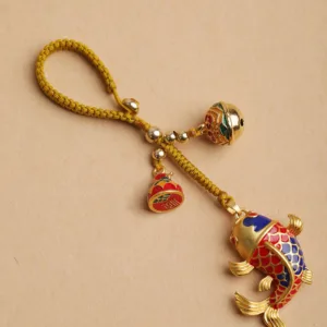 Koi Fish Hollow Bell Key Chain features a vibrant. colorful koi fish design paired with a charming hollow bell pendant. Crafted from durable materials. this key chain symbolizes good fortune and prosperity. making it a perfect accessory to carry your keys or attach to bags. The delightful sound of the bell adds an element of joy. attracting wealth and positive energy wherever you go.