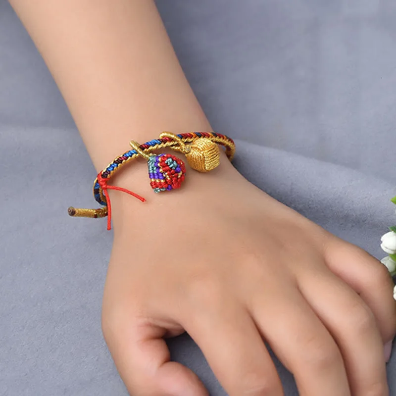 Mythstone Colorful Rope Luck Handmade Zongzi Golden Ball Charm Bracelet