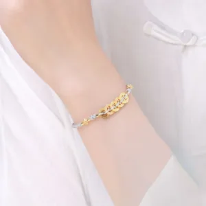 Handcrafted by skilled artisans. our Copper Coin Fortune Tree Pearl Bracelet blends blue symbolism for purity and healing with copper’s protective power. It’s a unique accessory that enhances luck and well-being.