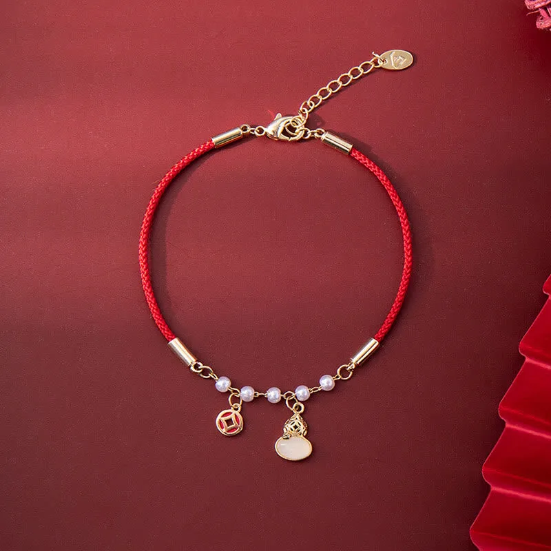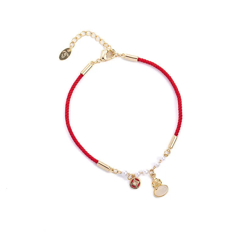 The Mythstone Copper Coin Pearl Gourd Charm Braided Red Rope Bracelet is a stylish and meaningful accessory suitable for those seeking inner peace and positive energy. Crafted with beautiful details. it’s perfect for adding a touch of spirituality and elegance to any outfit or meditation practice.