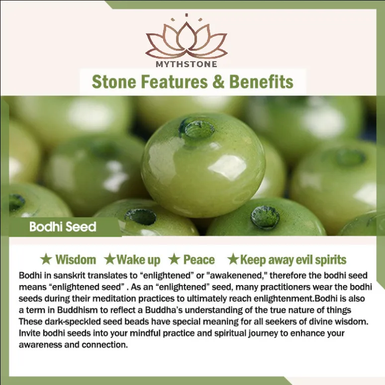 Bodhi in Sanskrit translates to ??enlightened??or “awakened.” therefore the bodhi seed means ??enlightened seed?? As an ??enlightened??seed. many practitioners wear the bodhi seeds during their meditation practices to ultimately reach enlightenment. Bodhi is also a term in Buddhism to reflect a Buddha’s understanding of the true nature of things. These dark-speckled seed beads have special meaning for all seekers of divine wisdom.